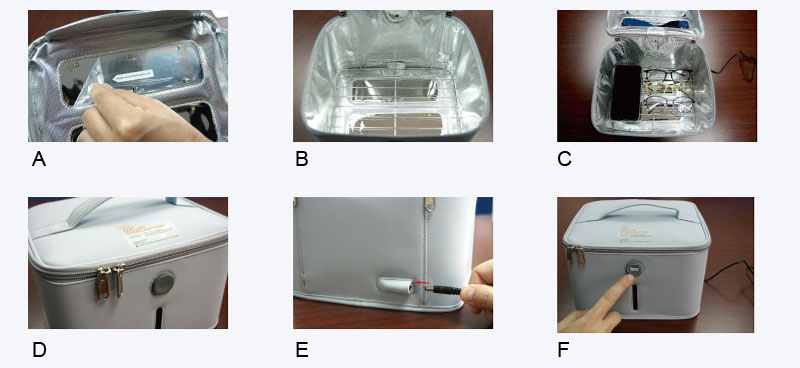 C. Put your items like eyeglasses, mobile phone on the holder for sterilization. |